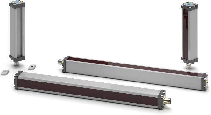 Crossed-beam area sensors form multiple infrared beams into very high density light curtains. Their optical synchronization, where no electric interconnection is required, simplifies replacing single beam light barriers in applications where the irregular shape of the object being detected requires a high resolution sensor.